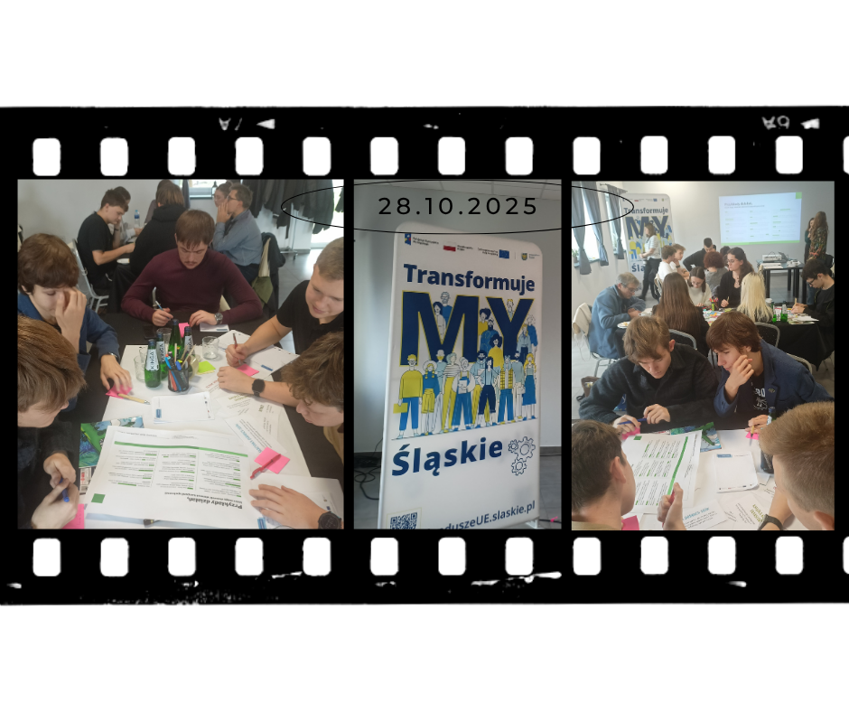 5 uczniów z 3 M : Adam, Szymon, Aleksander, Dominik i Borys w dniu dzisiejszym wzięli udział w wyjątkowych warsztatach „TransformujeMY Śląskie. Z młodymi i dla młodych” Mieli oni wyjątkową okazję do stworzenia autorskiego pomysłu na kampanię społeczną dotyczącą zmian jakie zachodzą w naszym regionie i wiążących się z nimi wyzwaniami. Warsztaty były podzielone na część teoretyczną i kreatywną. W tej drugiej części nasi uczniowie mieli niepowtarzalną okazję poczuć się jak pracownicy agencji reklamowej. Otrzymali bowiem zlecenie na przygotowanie elementu kampanii społecznej. Najlepsza praca zostanie pokazana podczas finału 28.11 w Muzeum Śląskim w Katowicach.