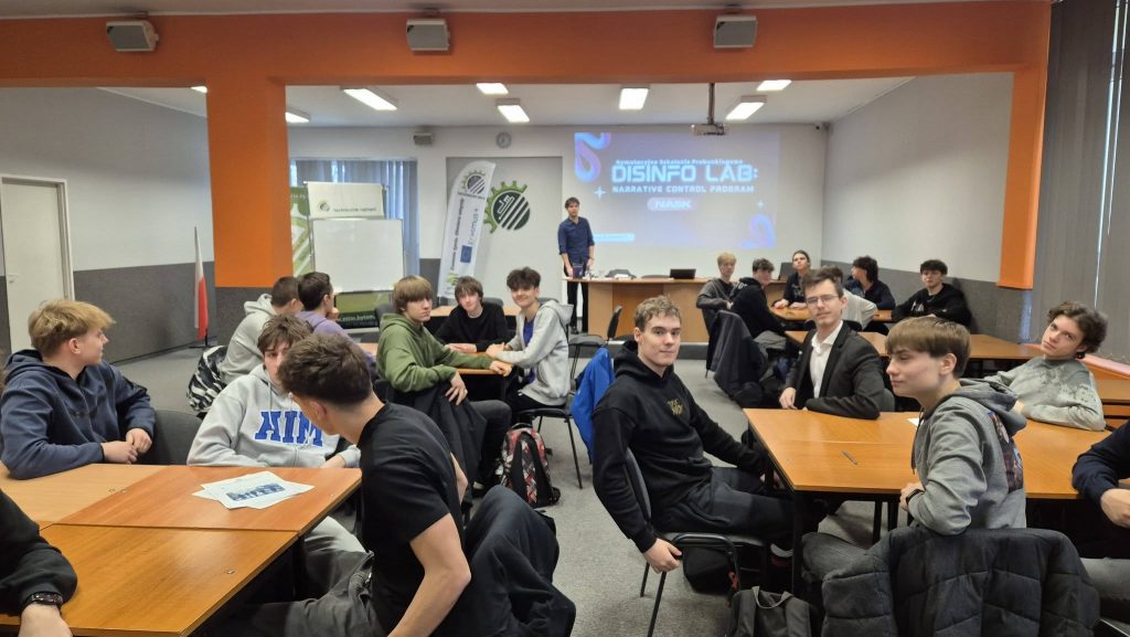 Dziś w naszej szkole odbyły się warsztaty pt. „DisinfoLab:Nie daj się dezinformacji”, przeprowadzone przez pana Kamila – przedstawiciela NASK. Zajęcia miały formę gry symulacyjnej, w której uczniowie wcielili się w rolę stażystów w fikcyjnej, kosmicznej firmie i pracowali zespołowo nad podejmowaniem decyzji opartych na napływających informacjach.